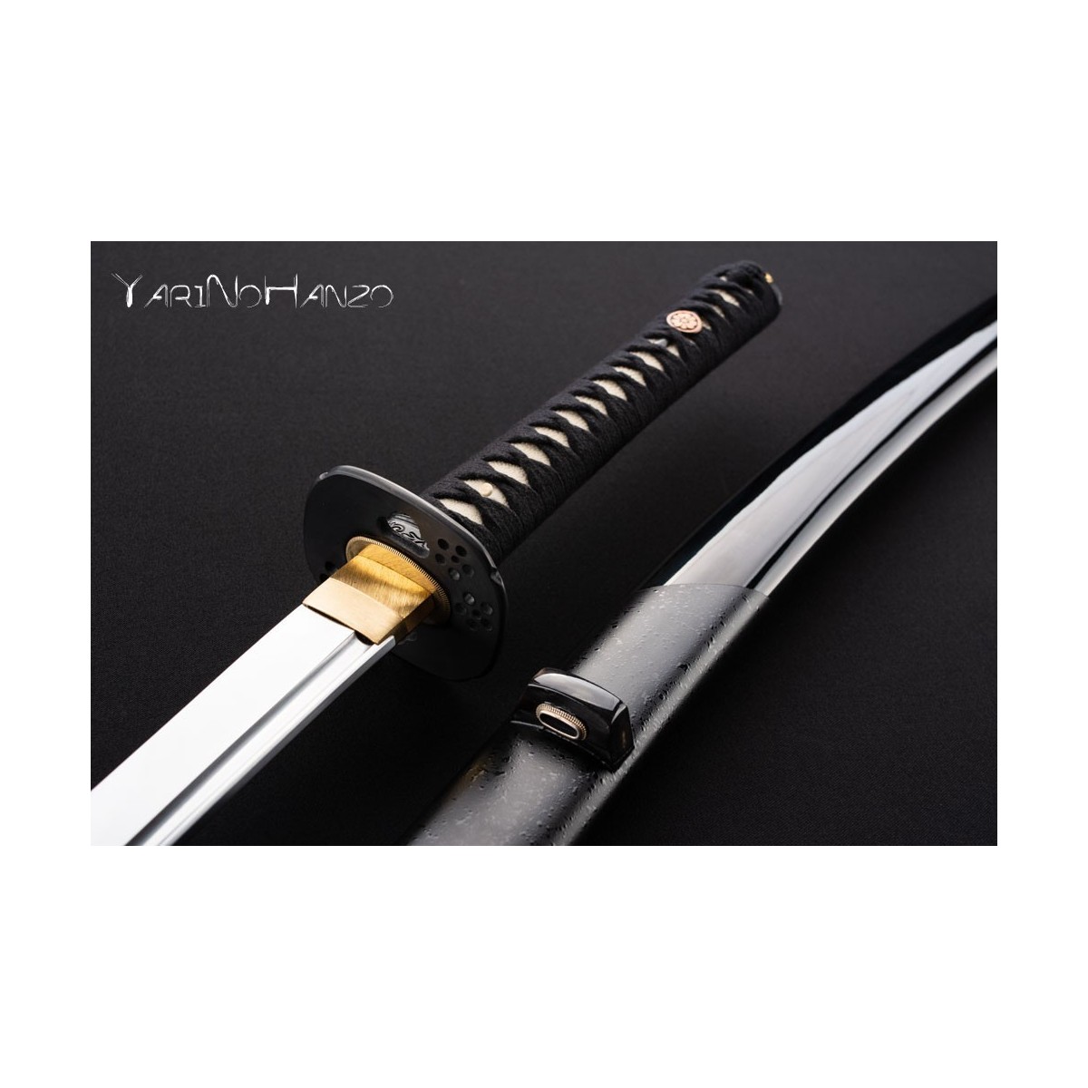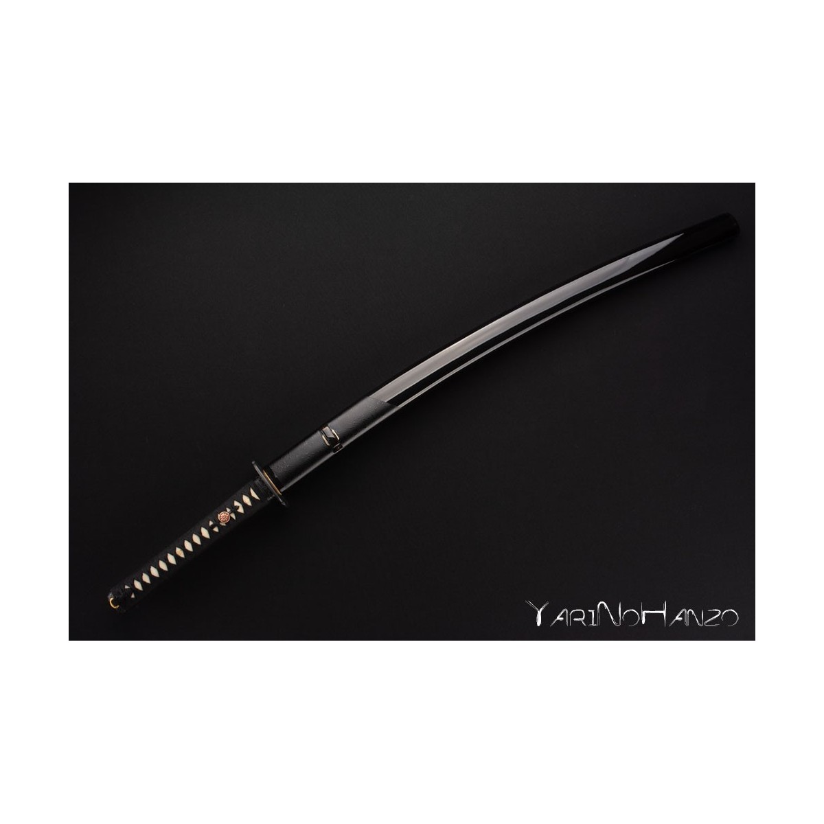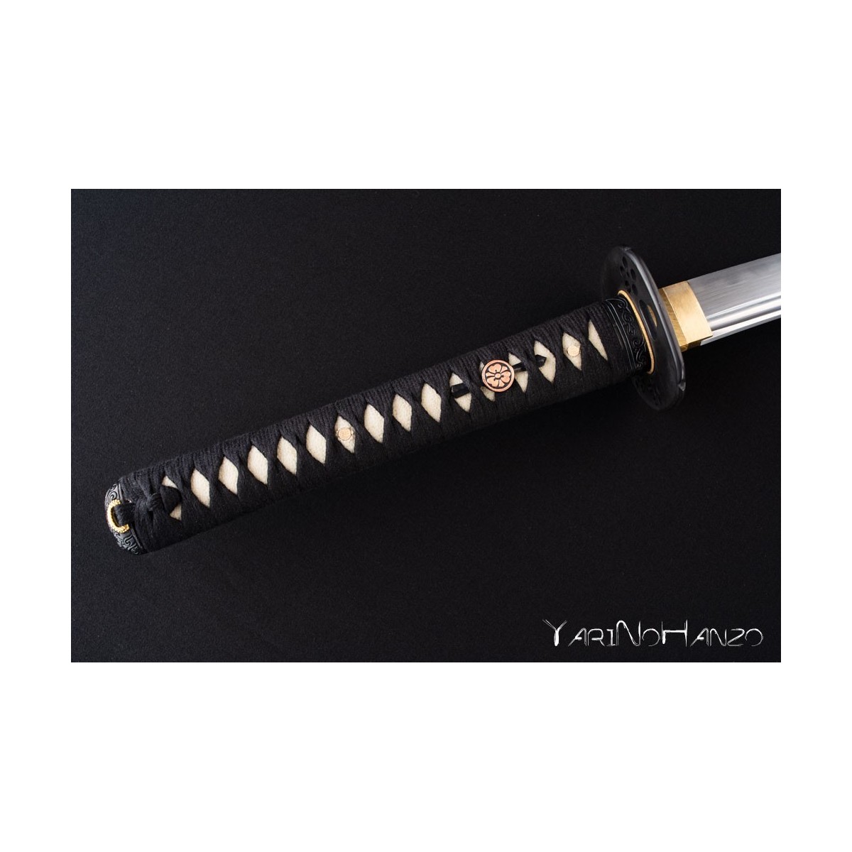 - Schwarzes Tsuka-Ito (Griffwicklung) und Tsuba aus Eisen.