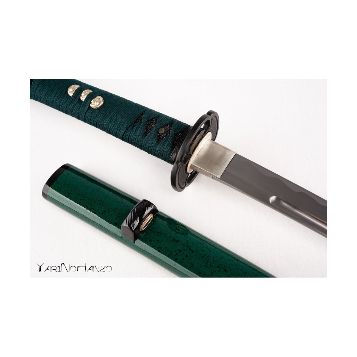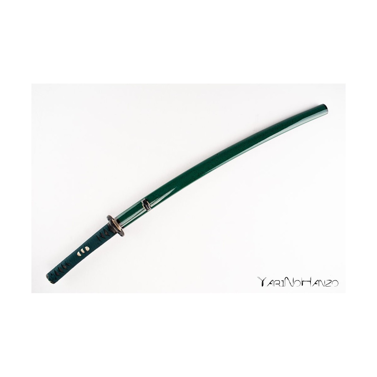 - Grüne-scharze lackierte Saya (Scheide) aus Holz.