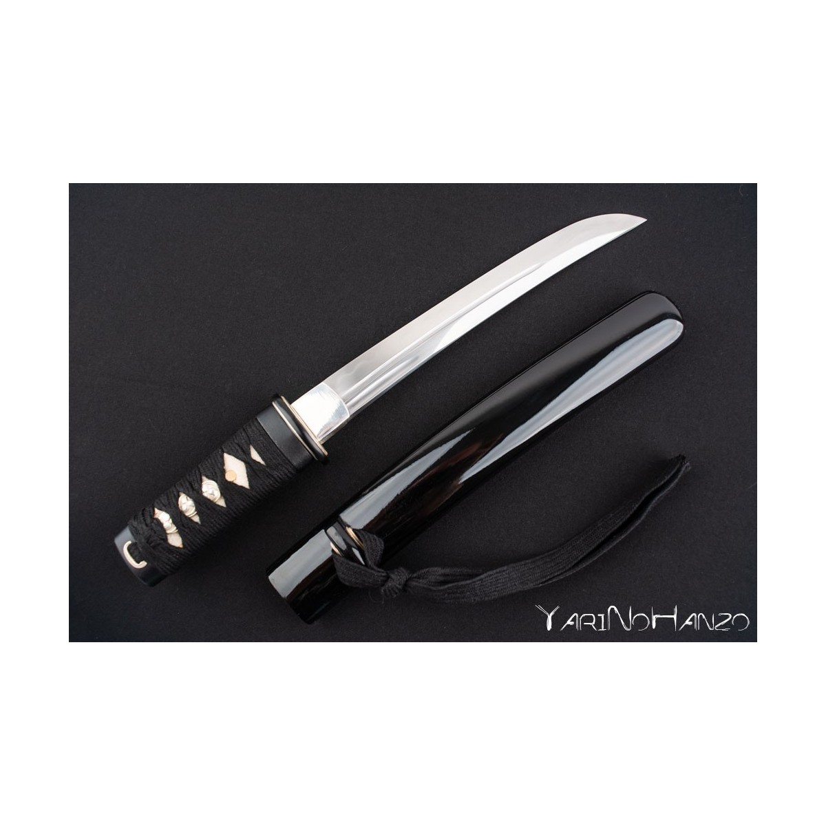 • Tantō mit AISI1060 Klinge aus hochkohlenstoffhaltigem Stahl mit differenzierter Tonhärtung
