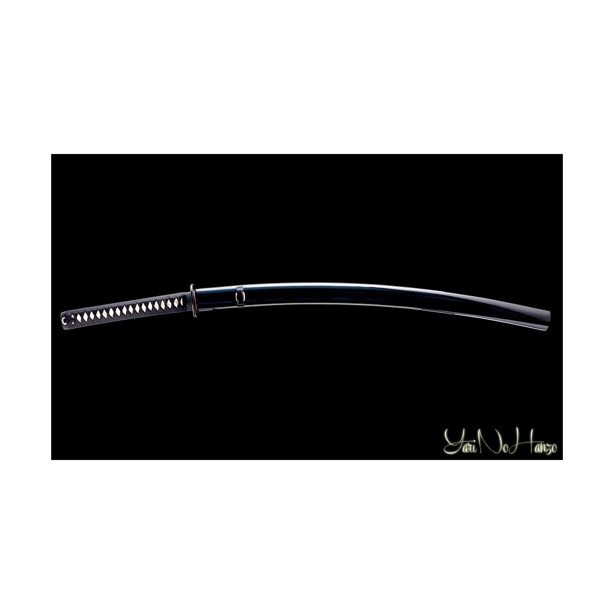 - Stumpfe Maru-Kitae-Klinge mit Bohi handgeschmiedet aus 1060 hoch kohlenstoffhaltigem Stahl mit selektiven Härtung Ton.