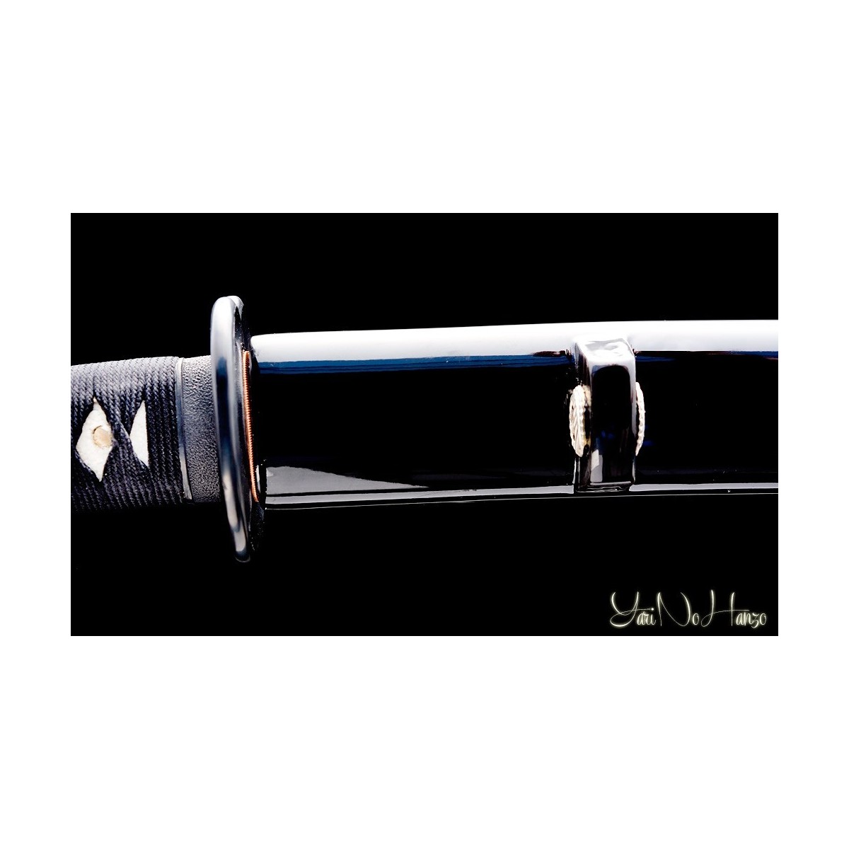 - Schwarzes Tsuka-Ito (Griffwicklung) aus Seide und traditionelle Musashi-Tsuba (Schwertstichblatt) hergestellt für Training.