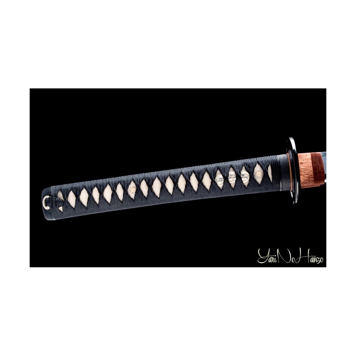 - Traditionelle Tsuka (Griff) mit Hishigami, dass eine bessere Griffigkeit und eine höhere Langlebigkeit des Tsuka-Maki (Stil/Muster/Art der Griffwicklung) garantiert.