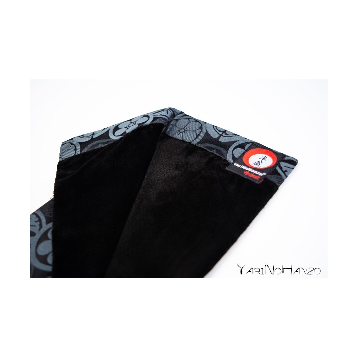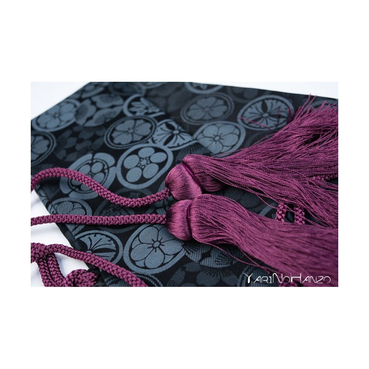 Handgefertigtes Katana Bukuro aus japanischem Stoff mit Emblemen von Samurai-Familien (Kamon) (dunkler Hintergrund mit hellen Emblemen)