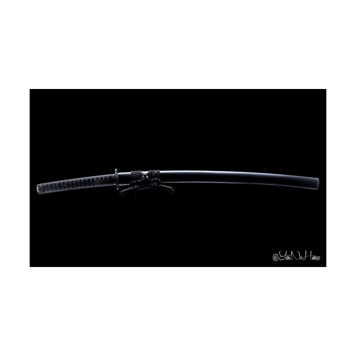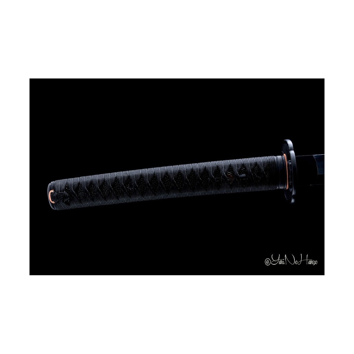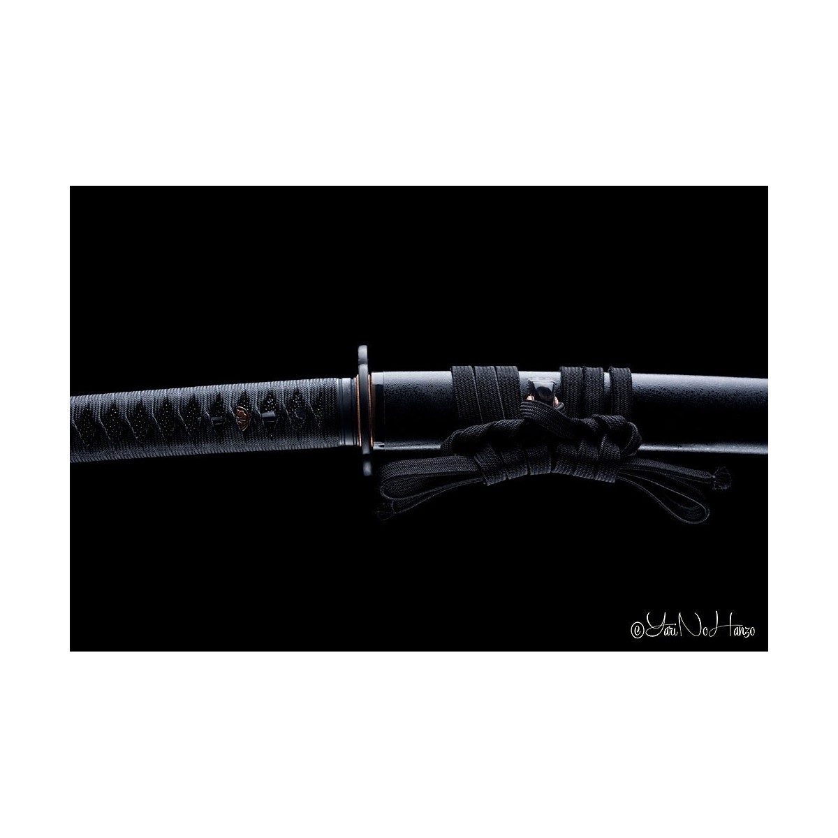 Schwarzes Tsuka-Ito (Griffwicklung) aus Baumwolle und schwarze echte Rochenhaut.