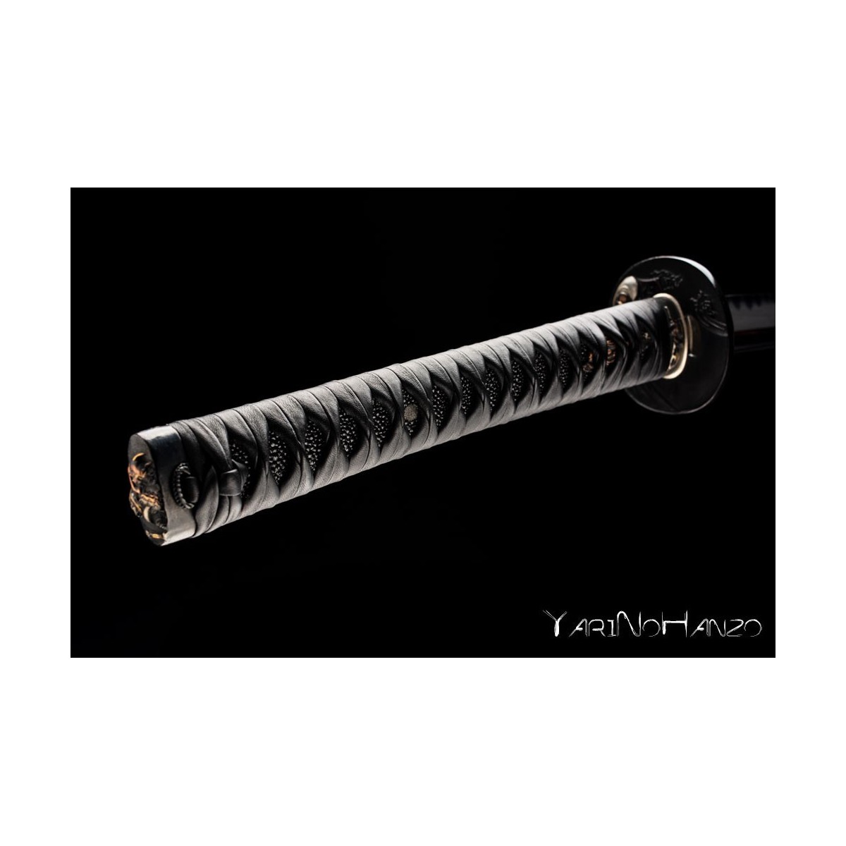 - Traditionelle Tsuka (Griff) mit Hishigami, dass eine bessere Griffigkeit und eine höhere Langlebigkeit des Tsuka-Maki (Stil/Muster/Art der Griffwicklung) garantiert.