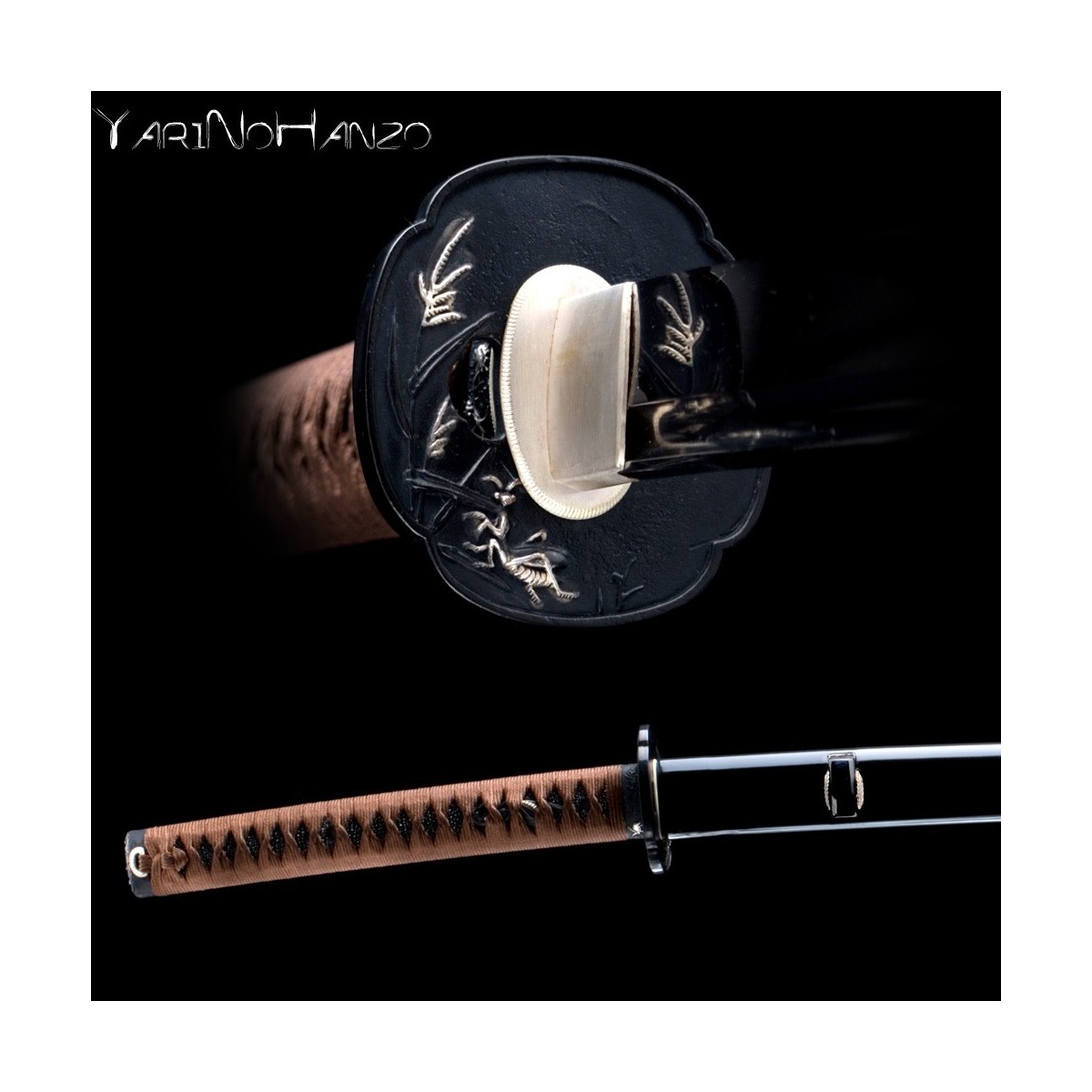 - Die gesamte Montur dieses Schwertes (Koshirae) mit Thema Kamakiri (Gottesanbeterin) ist eine Reproduktion eines antiken Katana der Edo-Zeit.