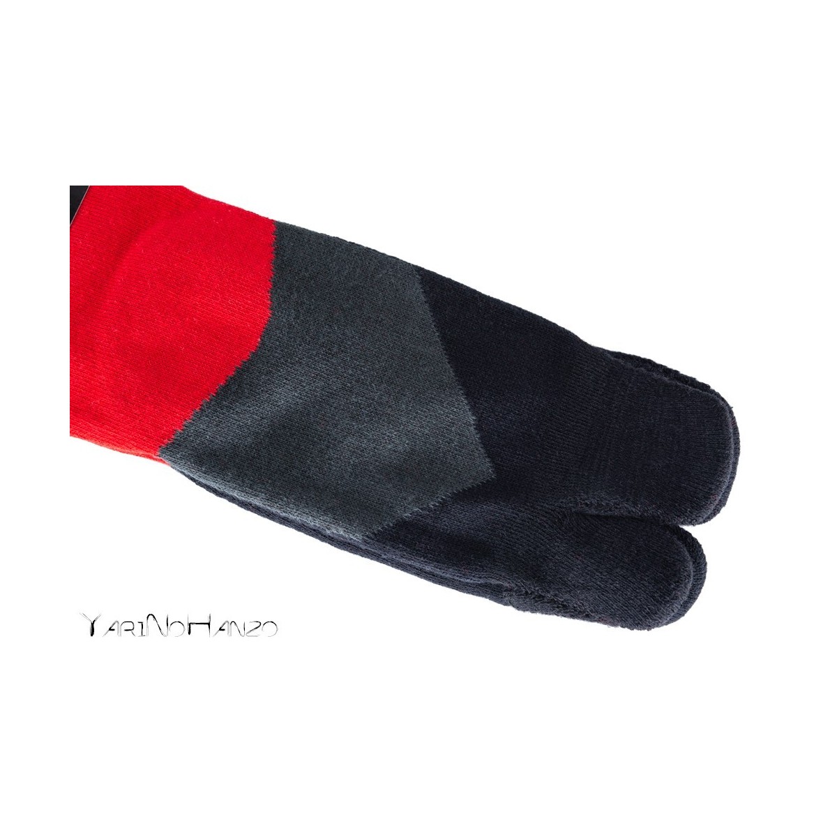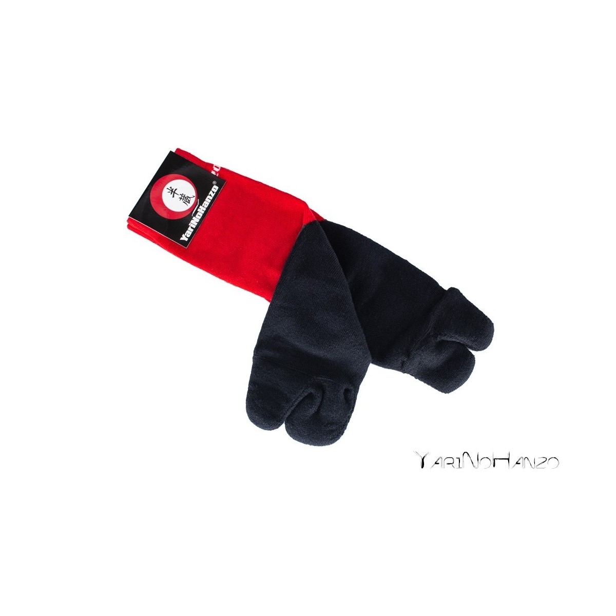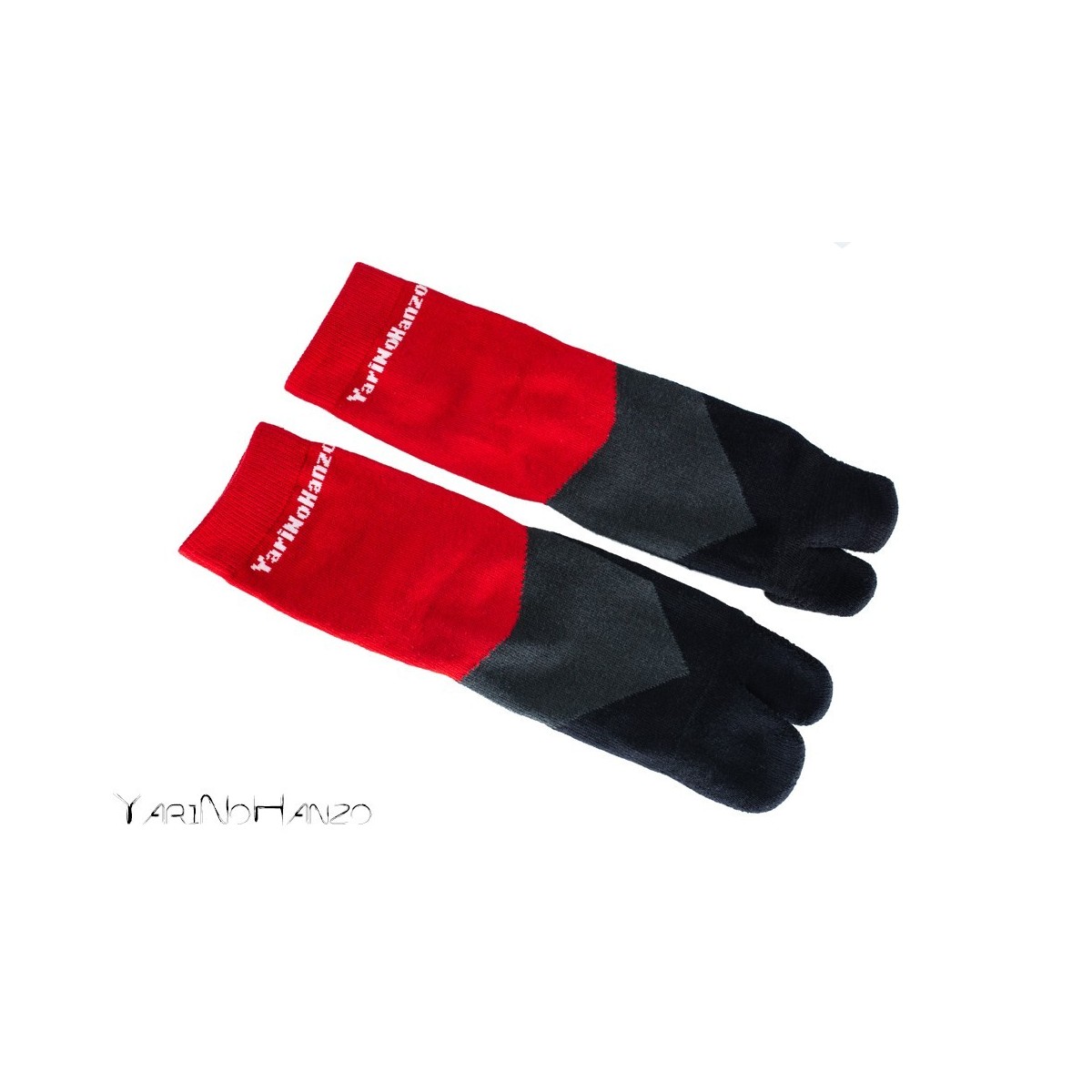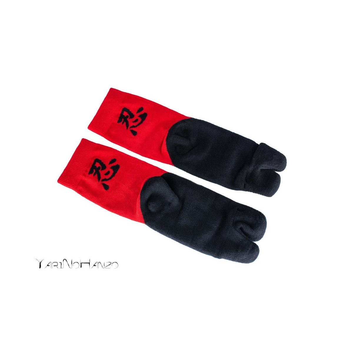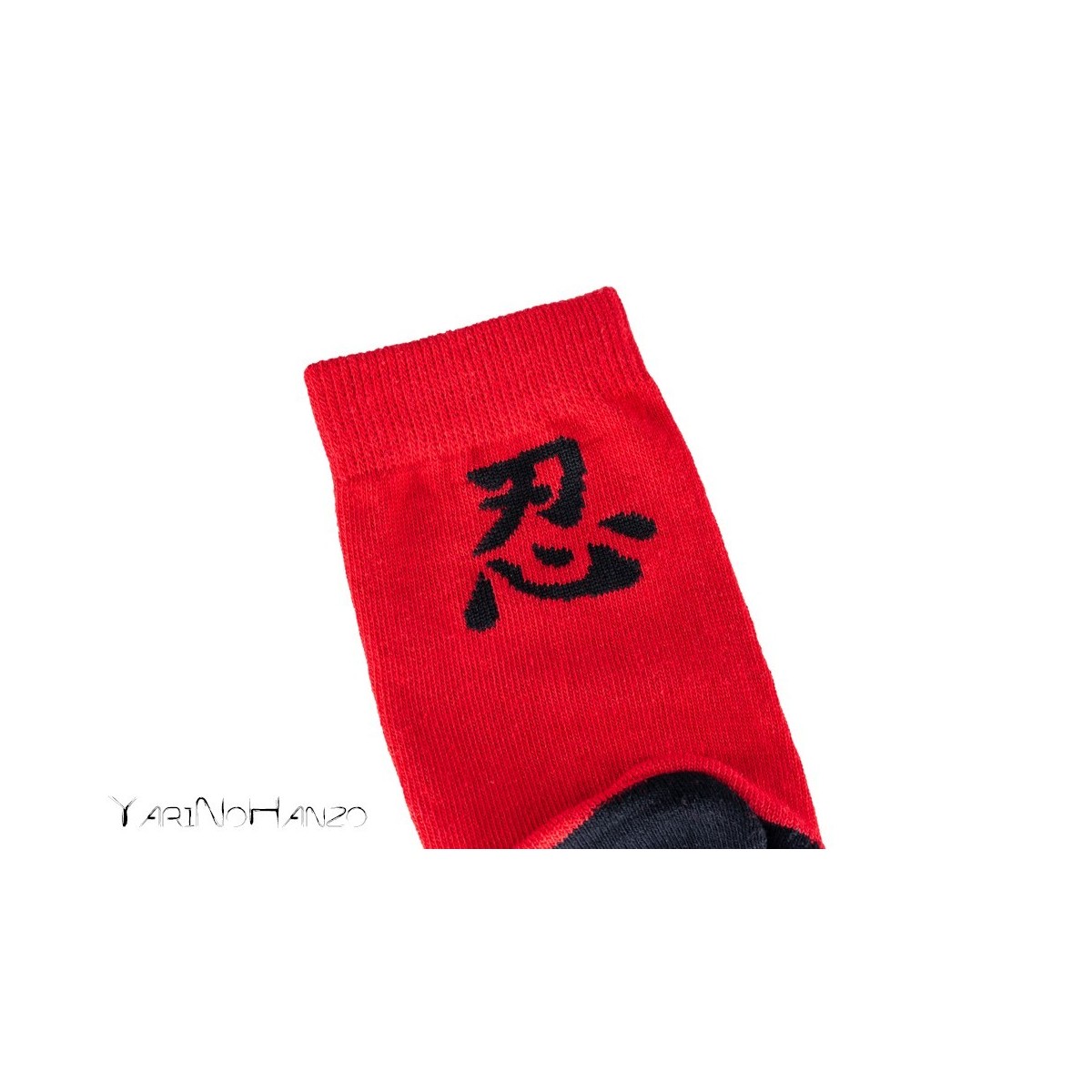Die Socken sind in drei Farben erhältlich, schwarz, rot und dunkelgrau, und tragen auf der Rückseite das Kanji 'NIN'.
