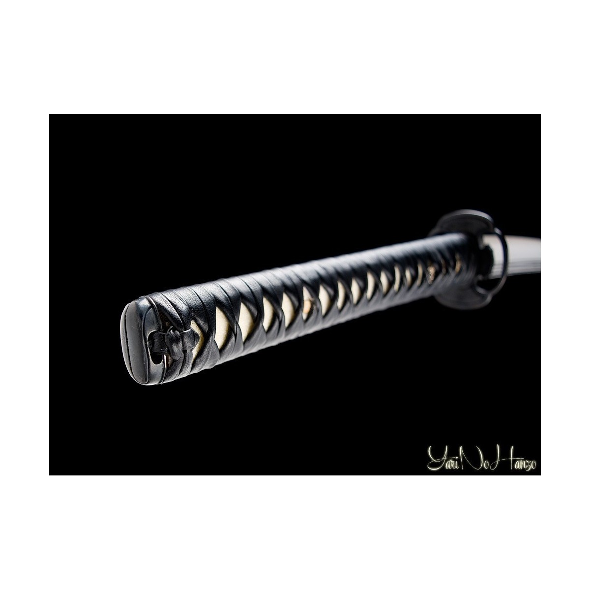- Traditionelle Tsuka (Griff) mit Hishigami, dass eine bessere Griffigkeit und eine höhere Langlebigkeit des Tsuka-Maki (Stil/Muster/Art der Griffwicklung) garantiert.