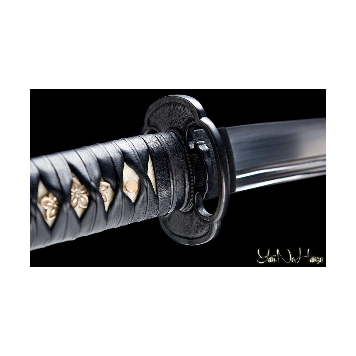 - Schwarzes Tsukagawa (Ledergriff) aus Leder von hoher Qualität Made in Italy.
