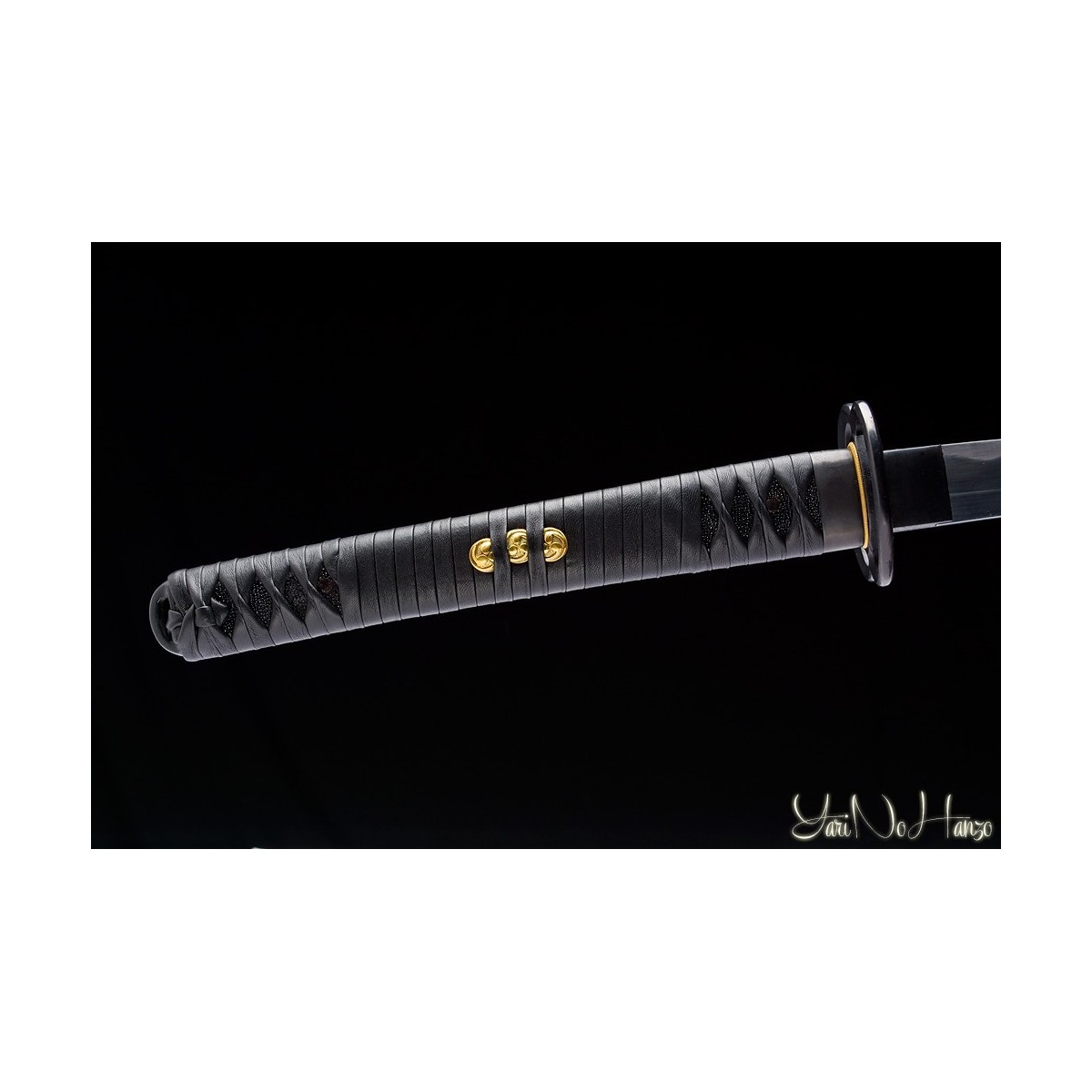 - Schwarzes Tsukagawa (Ledergriff) aus Leder von hoher Qualität Made in Italy.