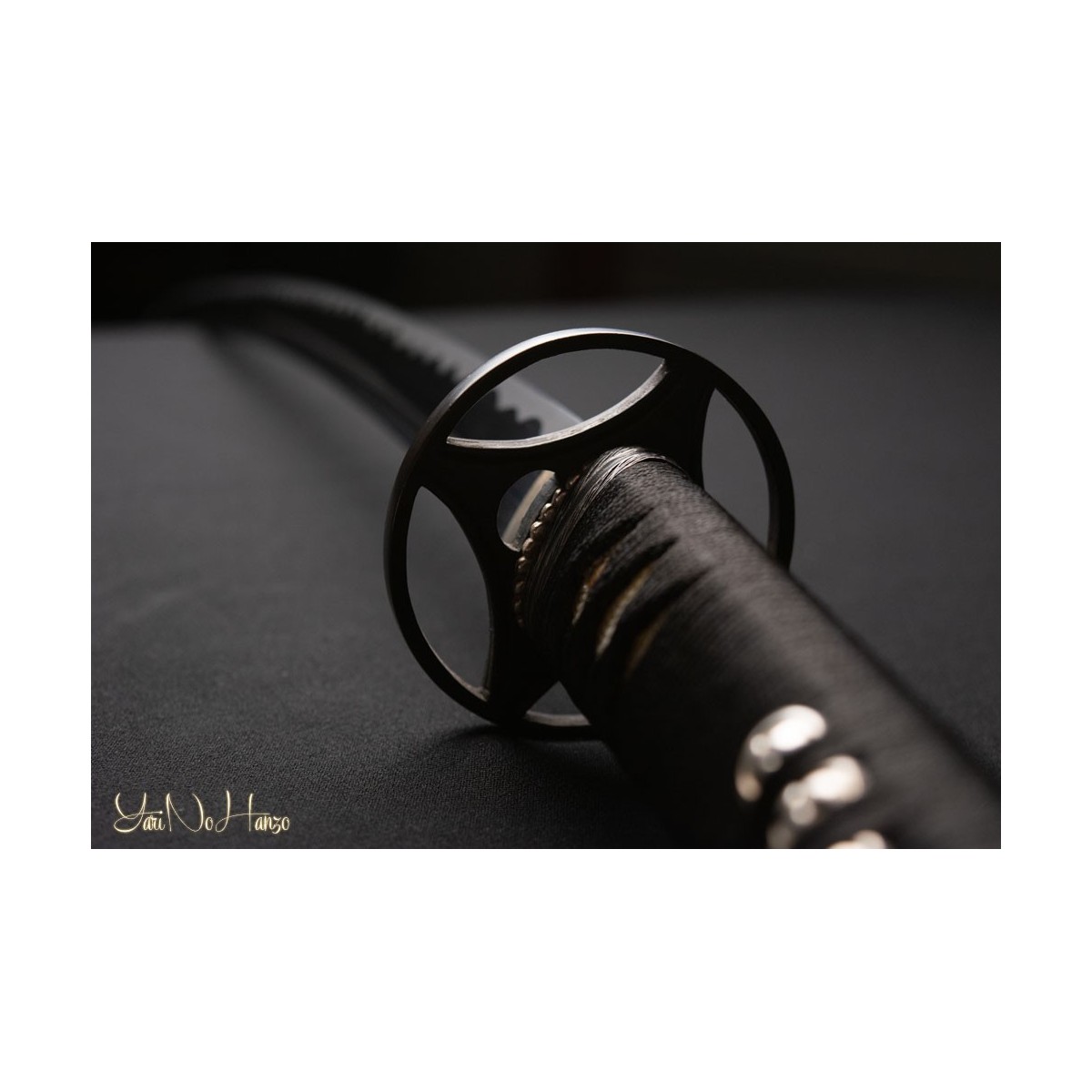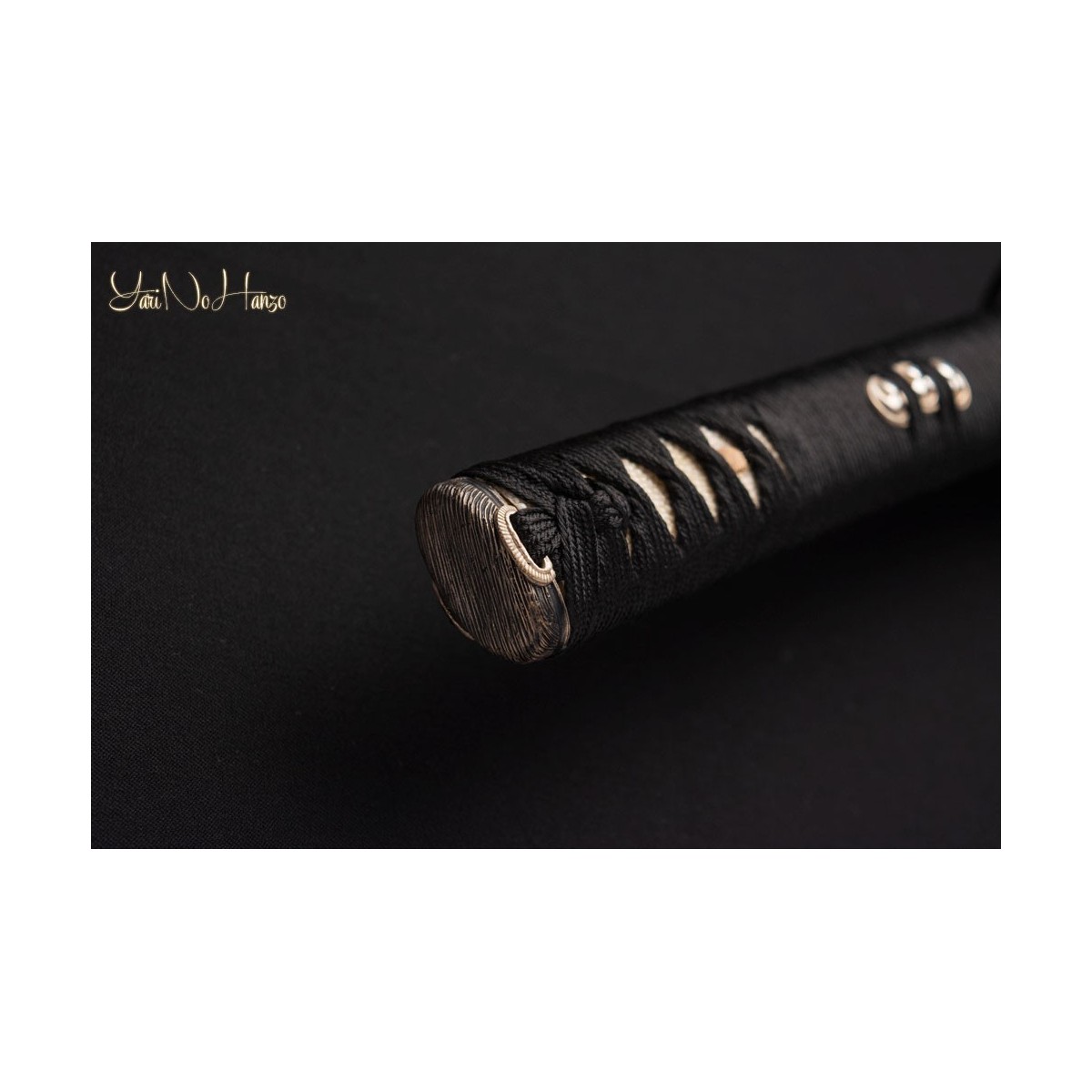 - Schwarzes Tsuka-Ito (Griffwicklung) aus Seide, Samegawa aus echte Rochenhaut und traditionelle Shin No Marugata-Tsuba (Schwertstichblatt).