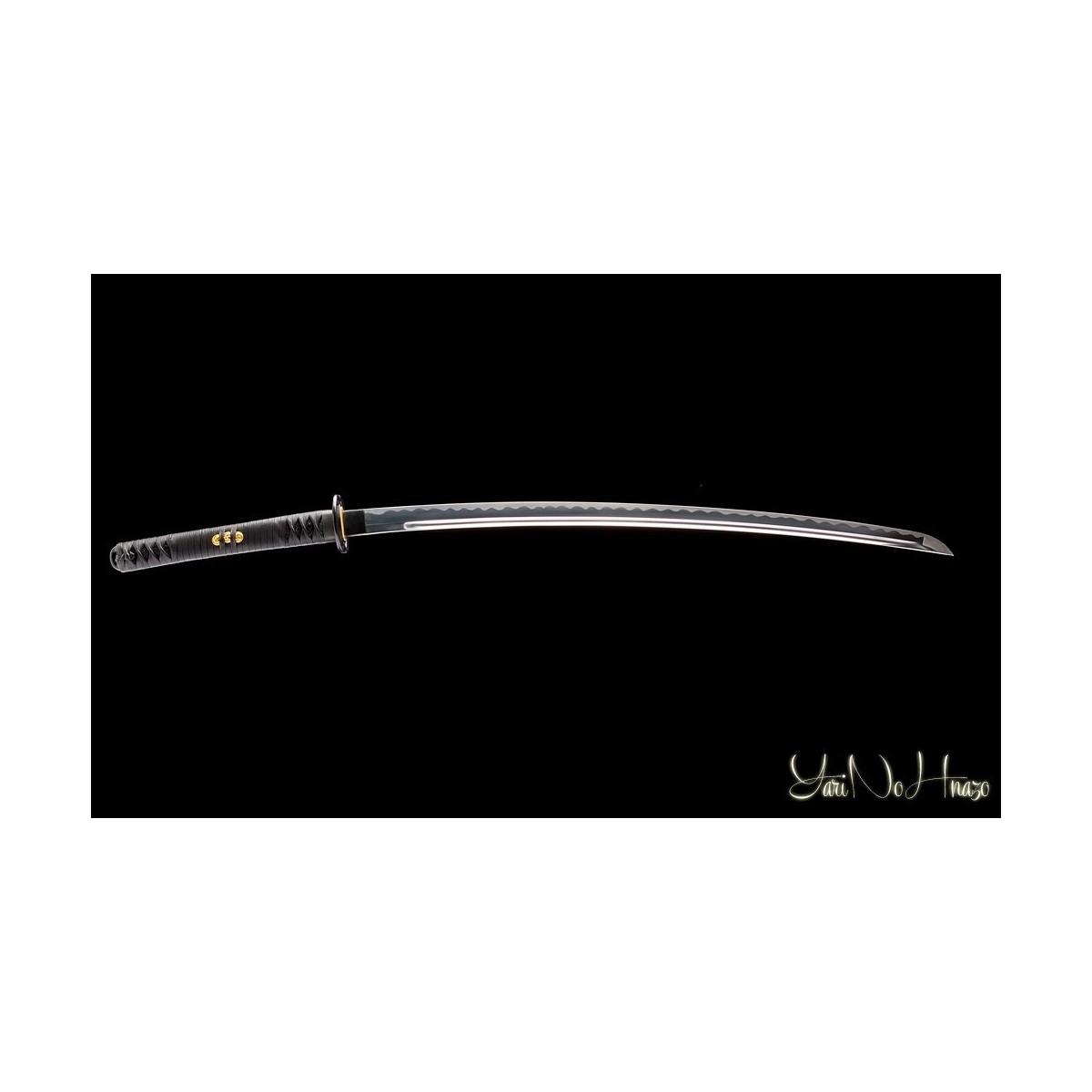 - 80 Cm. Stumpfe Maru-Kitae-Klinge mit Bo-Hi (Kanal) handgeschmiedet aus 1060 hoch kohlenstoffhaltigem Stahl und Gunome Choji-Hamon (Begriffsklärung (Ha = Schneide, Mon = Muster)) durch Ätzen erhalten.