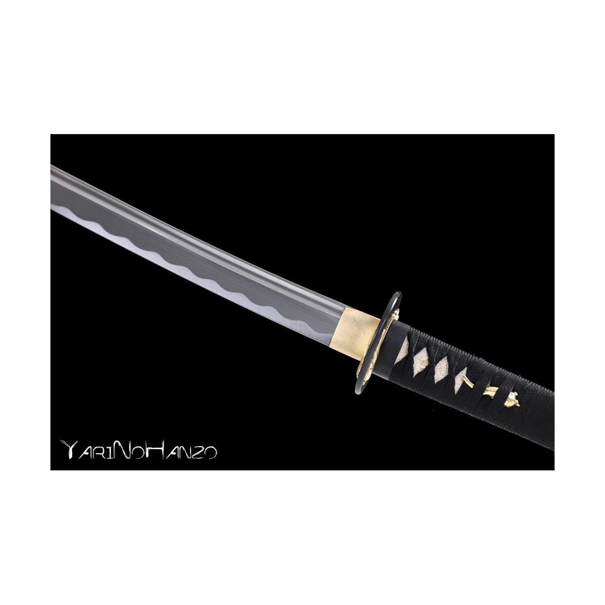 - Maru-Kitae-Klinge mit Bo-Hi (Kanal) handgeschmiedet aus 1045 hoch kohlenstoffhaltigem Stahl.