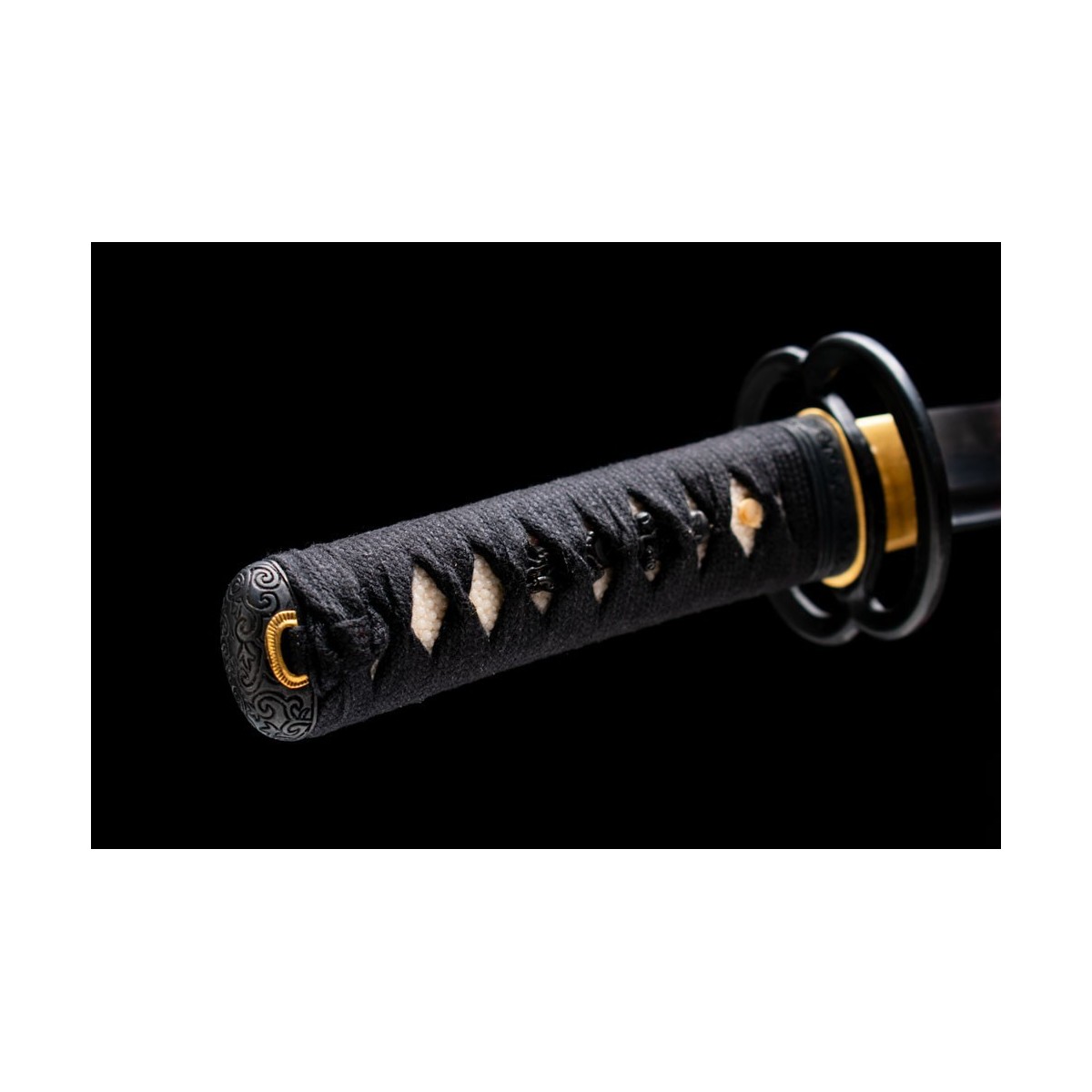 - Schwarzes Tsuka-Ito (Griffwicklung) und Tsuba Musashi hergestellt für Training.