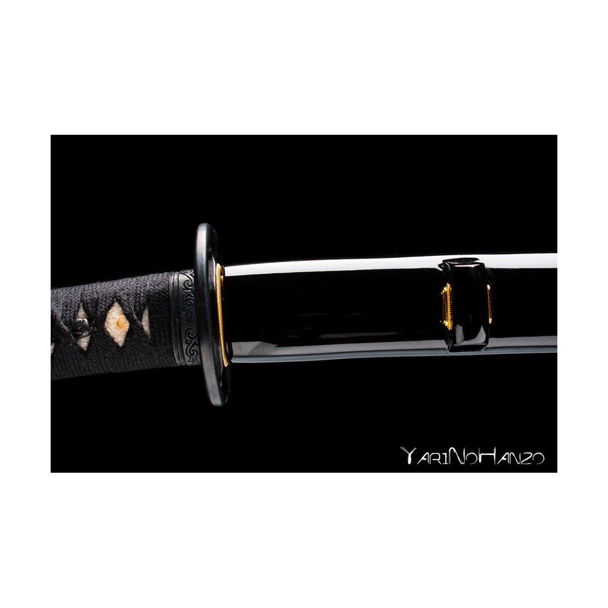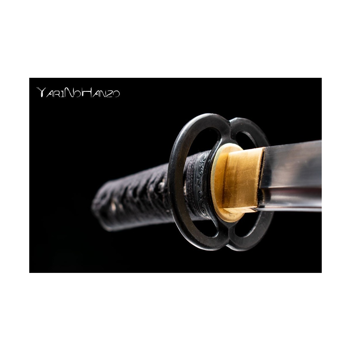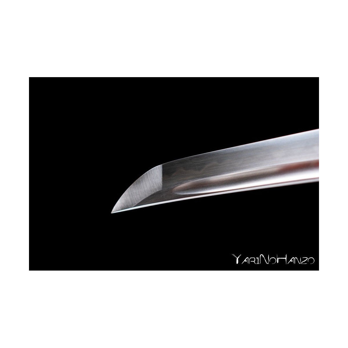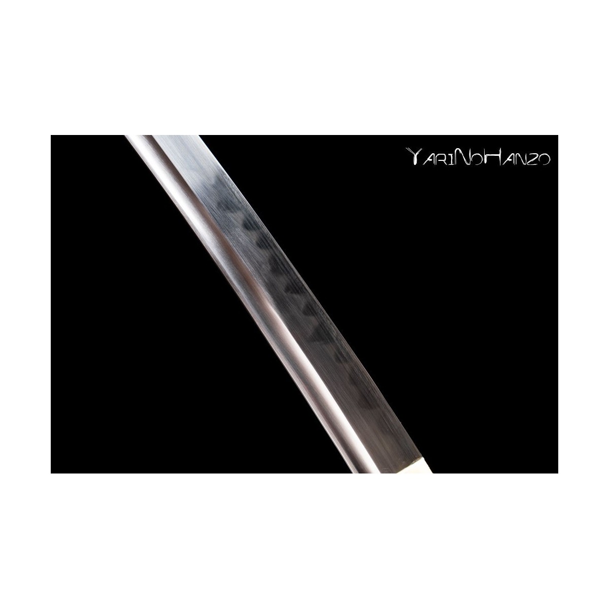 - Maru-Kitae-Klinge mit Bo-Hi (Kanal) aus 1060 Kohlenstoffstahl-lehmbeschichtete Differentialhärtung 60/45 HRC.