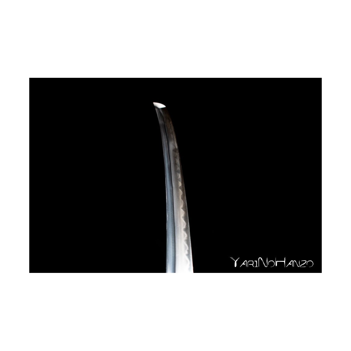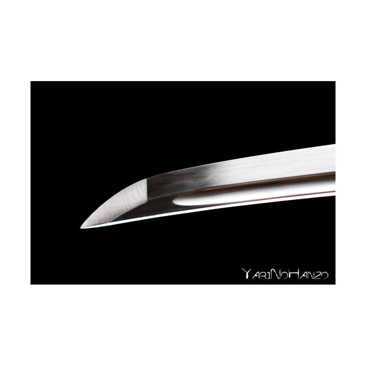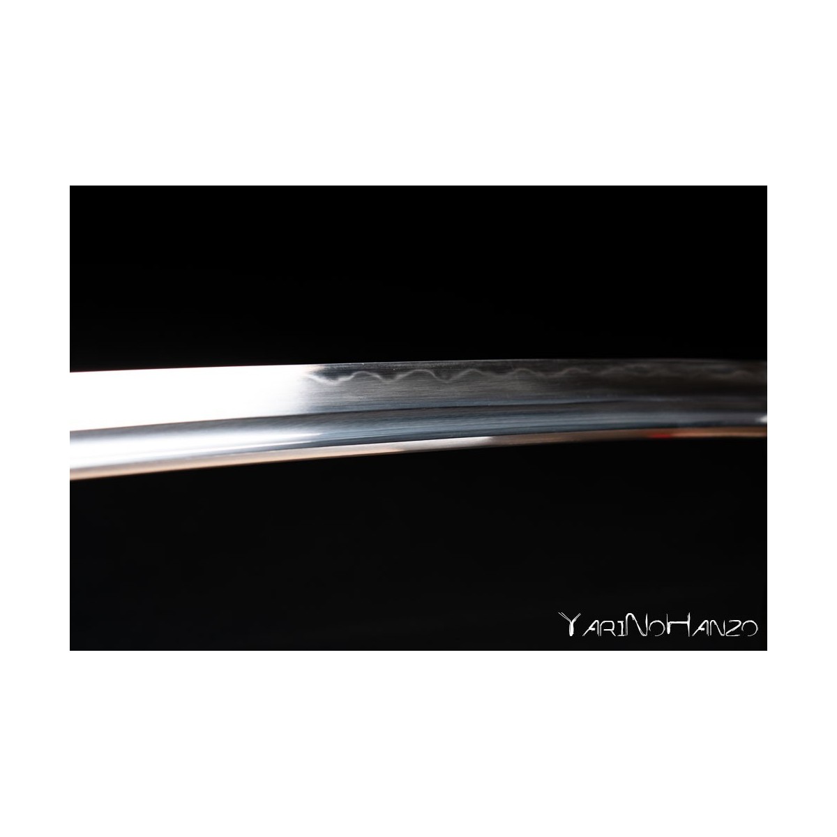 - Maru-Kitae-Klinge mit Bo-Hi (Kanal) aus 1060 Kohlenstoffstahl-lehmbeschichtete Differentialhärtung 60/45 HRC.