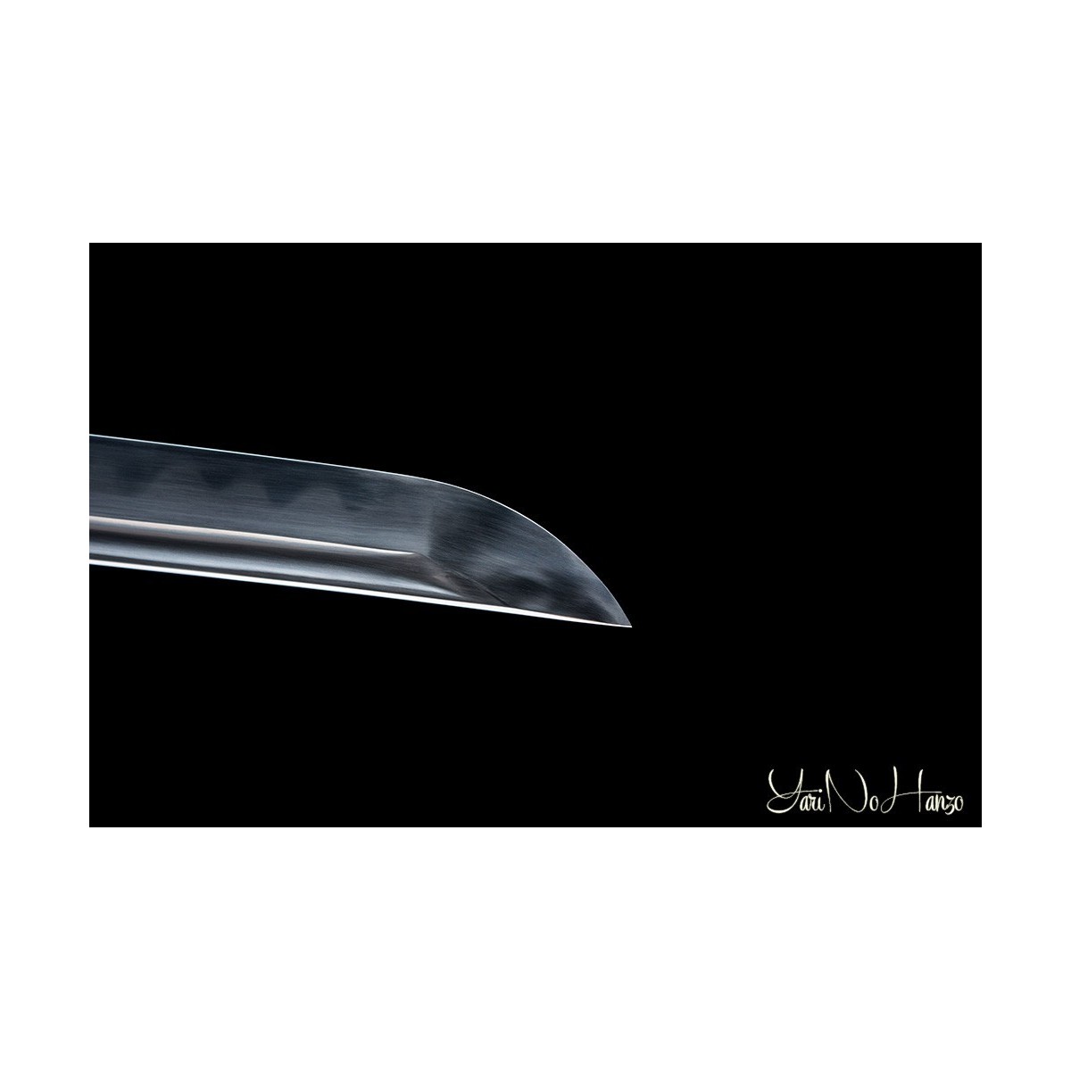 - Die scharfe Klinge hat eine Koshi-Sori (Maß einer gekrümmten Klinge vom Nagasa zum Mune am tiefsten Punkt). Dieses ist ein typisches Merkmal der Bizen-Klingen-Tradition.