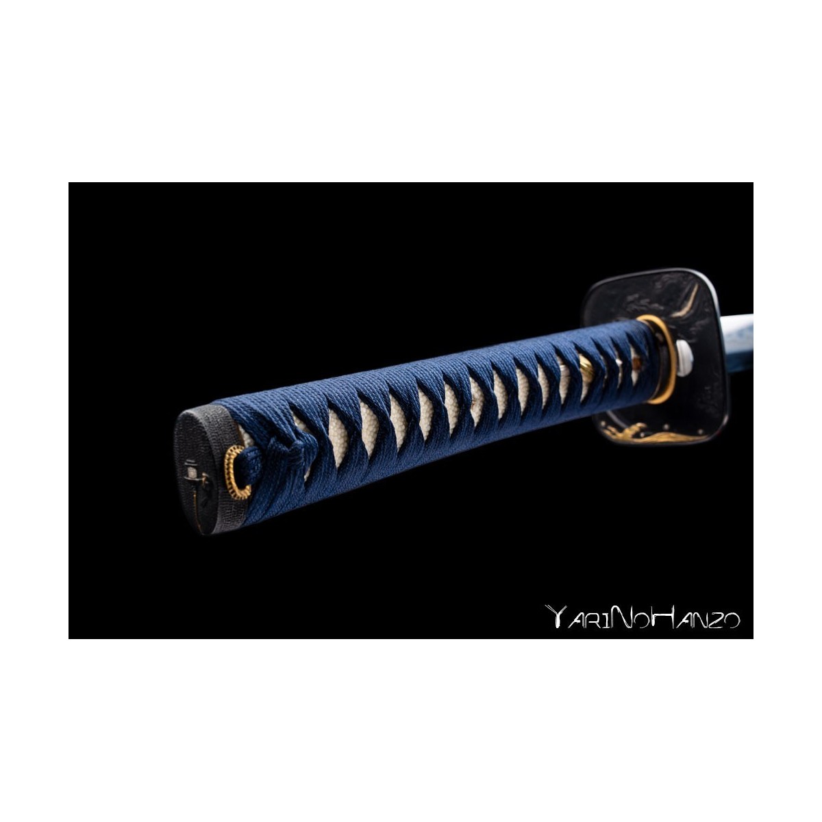 - Traditionelle Tsuka (Griff) mit Hishigami, dass eine bessere Griffigkeit und eine höhere Langlebigkeit des Tsuka-Maki (Stil/Muster/Art der Griffwicklung) garantiert.