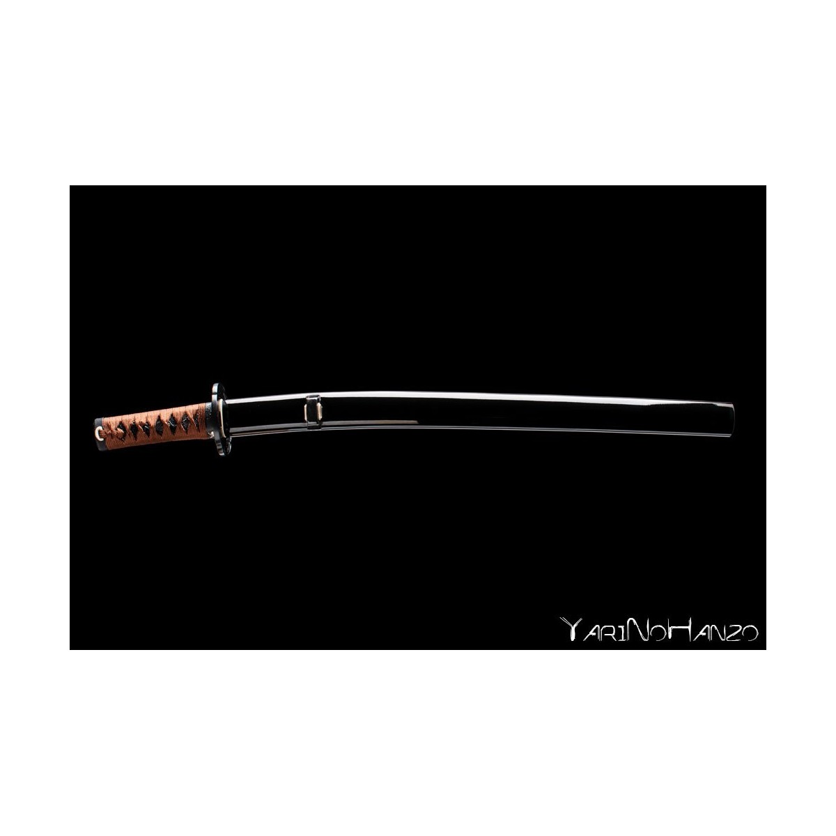 - Maru-Kitae-Klinge mit Bo-Hi (Kanal) handgeschmiedet aus 1095 hoch kohlenstoffhaltigem Stahl, selektiven Härtung Ton und echte Gunome-Choji-Hamon (Begriffsklärung (Ha = Schneide, Mon = Muster)).