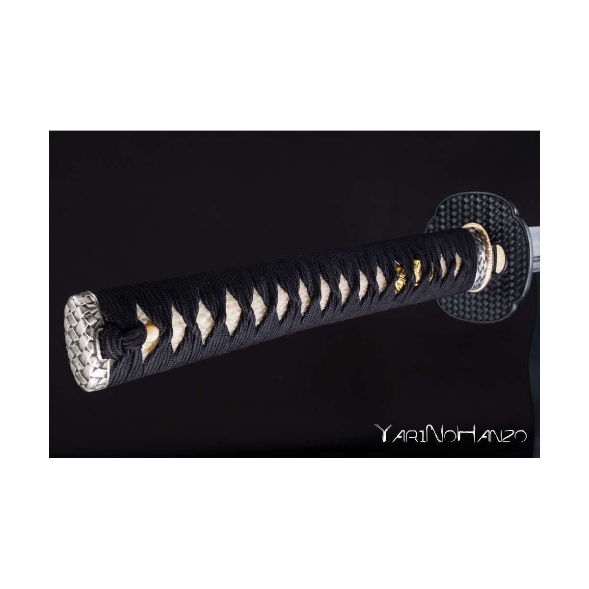 - Japanische schwarze Seide-Tsuka-Ito-Hineri Maki mit HISHIGAMI
