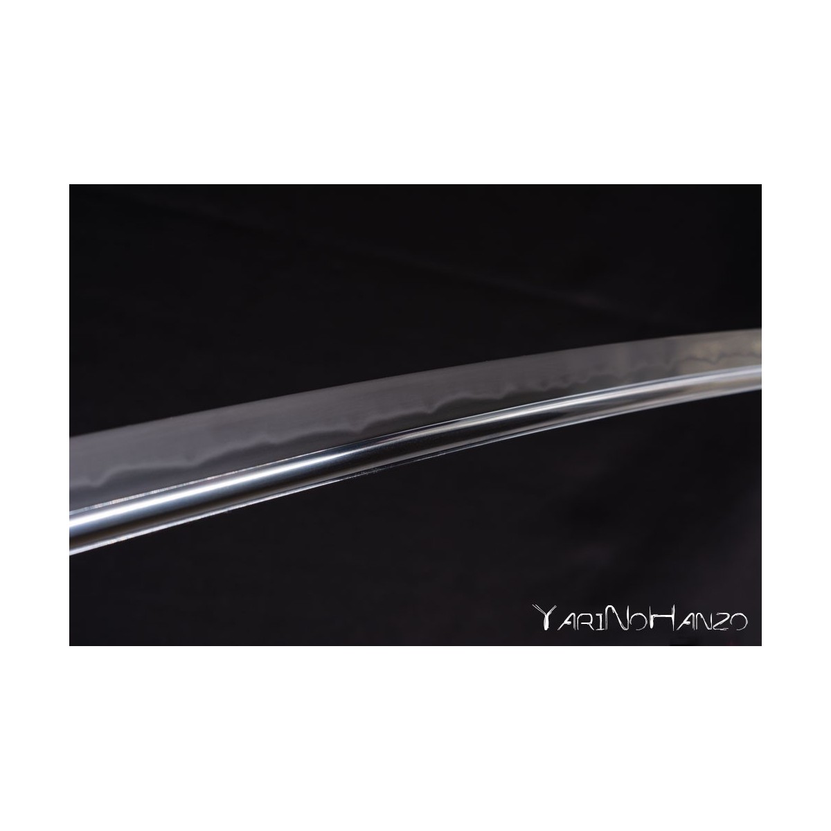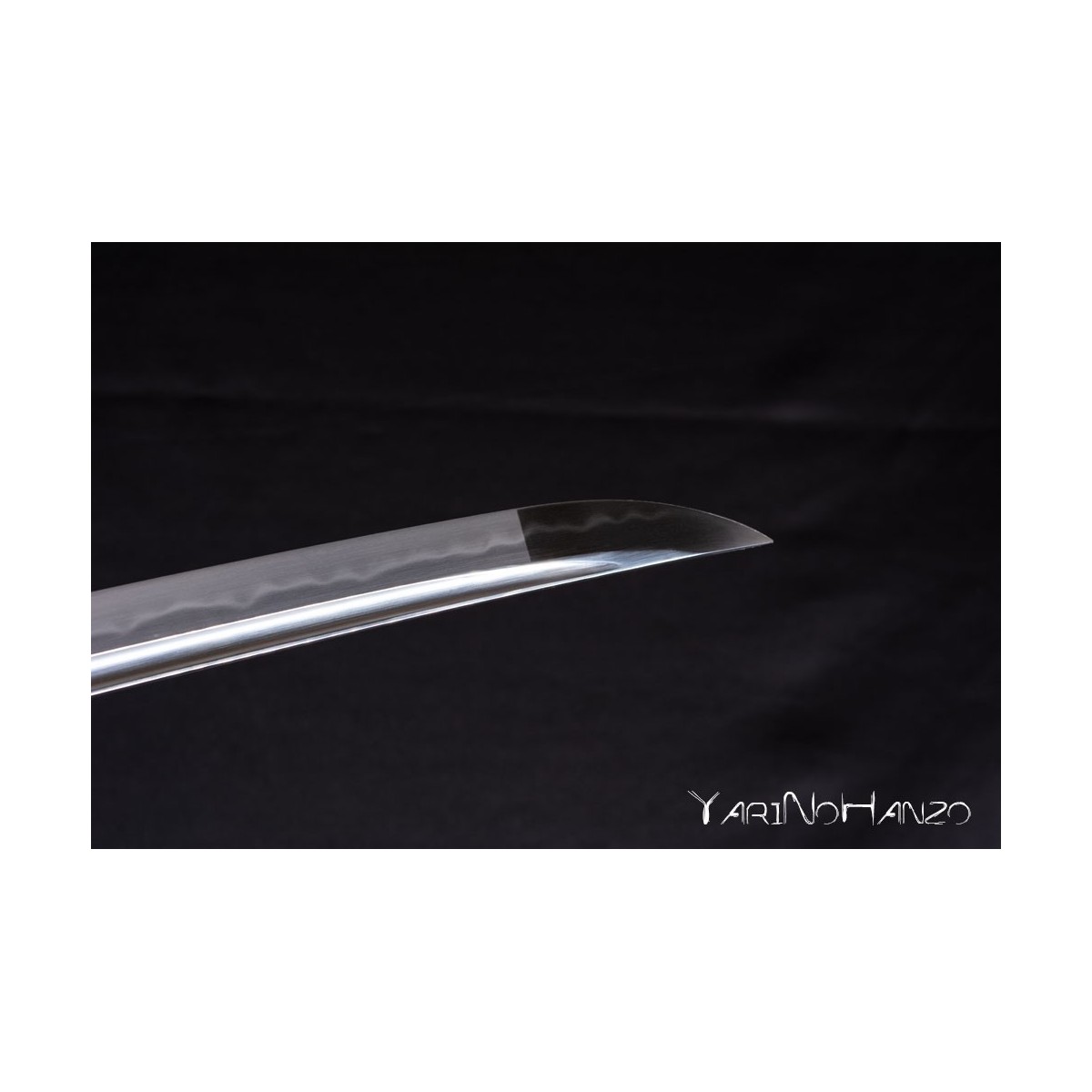 Die T-10 Klinge hat in der Tat eine mächtige Mihaba mit ō-kissaki mit Hamon Gunome, hergestellt nach der traditionellen Methode.