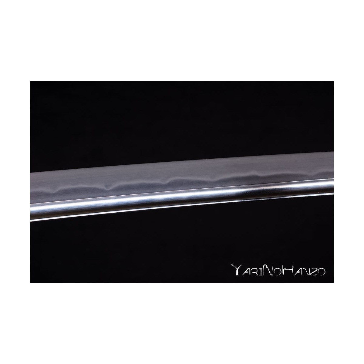 -Maru-Kitae-Klinge mit Bo-Hi, T-10 Stahl, selektive Ton Temperierung und authentischer Midare Stil Hamon.