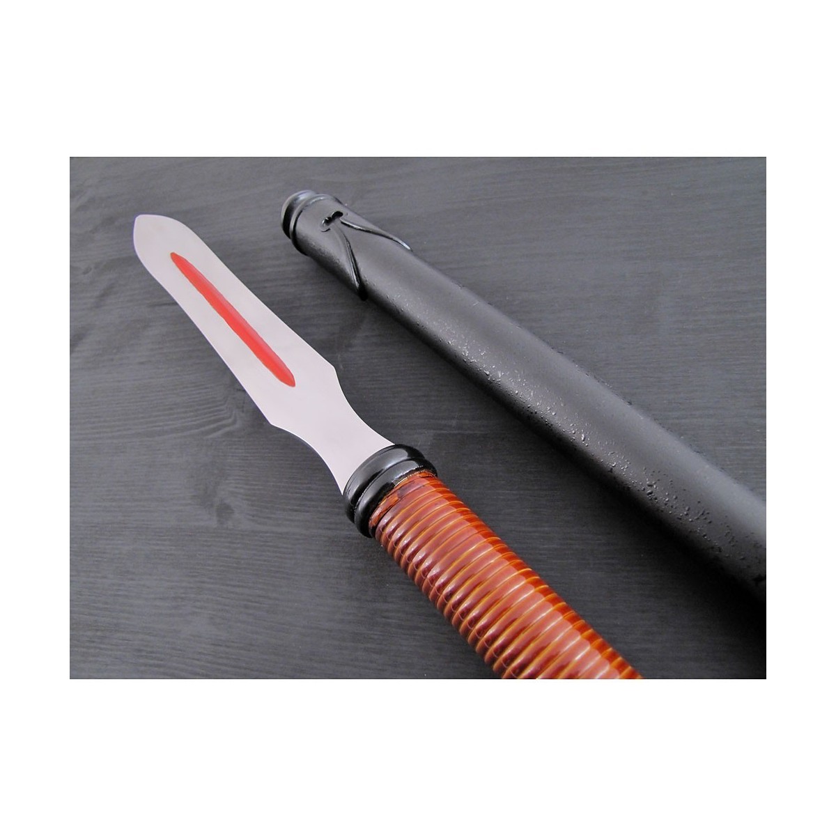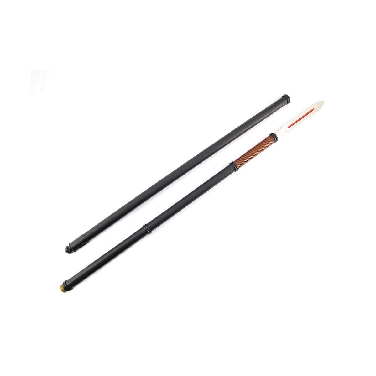 - Länge 206 Cm. - Der Yari ist aus Holz mit schwarzem Hochglanzlack verstärkt mit Metallringen - Querschnitt dreieckig mit Bohi (Hohlkehle) auf der Flachseite - Kuroro Ishime