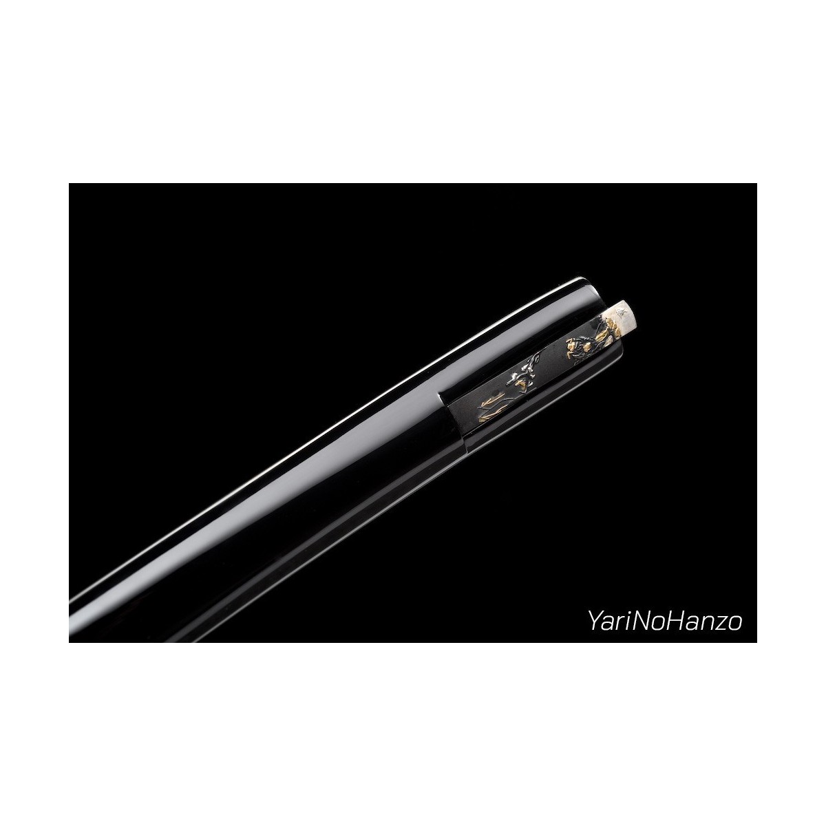 - Schwarze hochglanzlackierte Saya aus Holz.