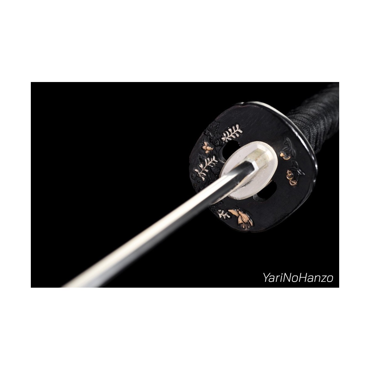 - Schwarzes Tsuka-Ito (Griffwicklung) aus Seide.