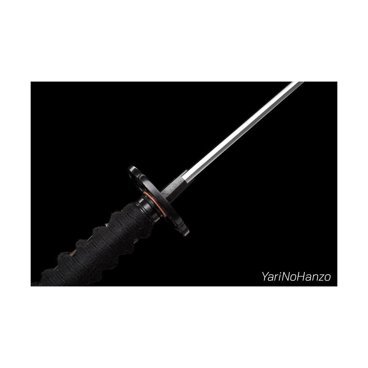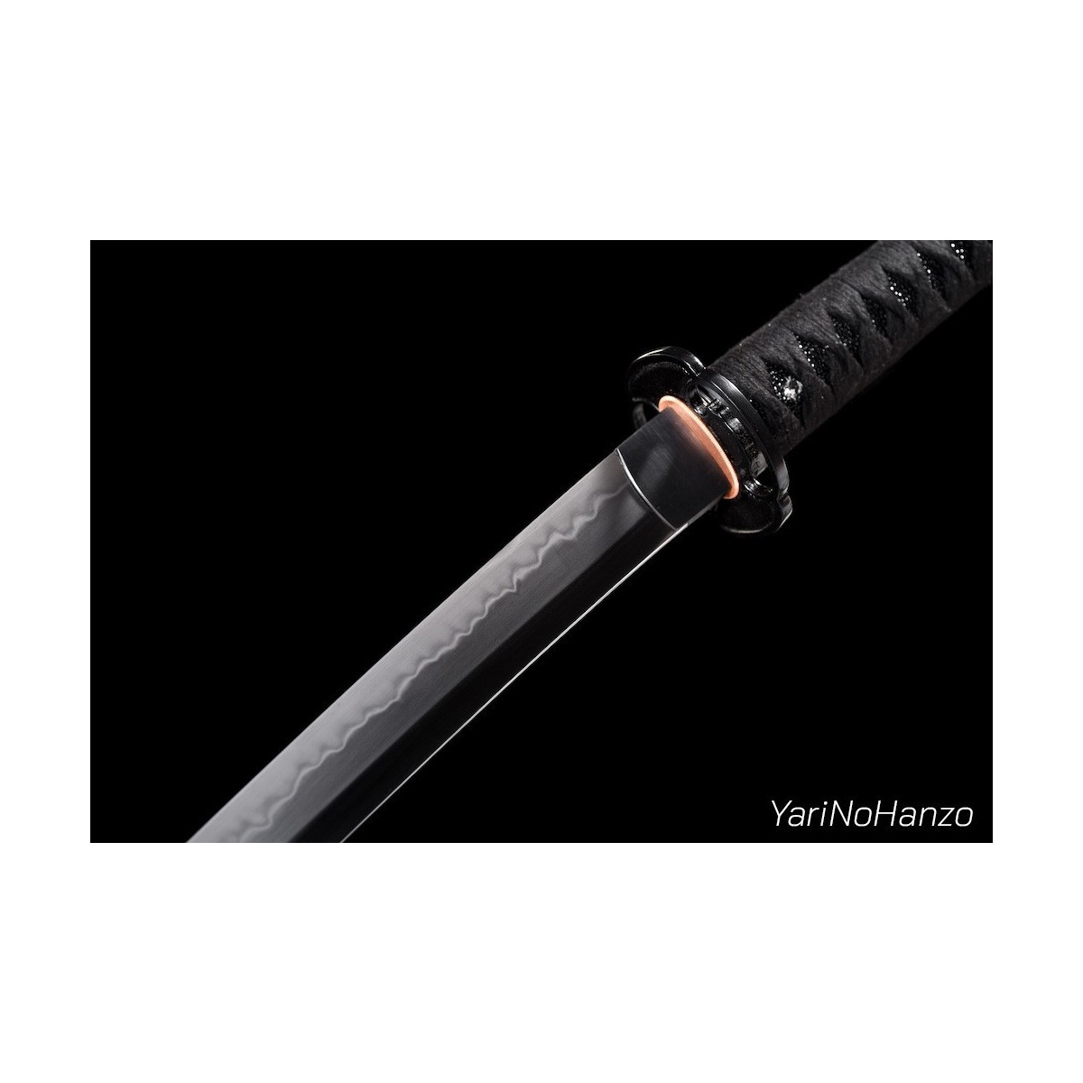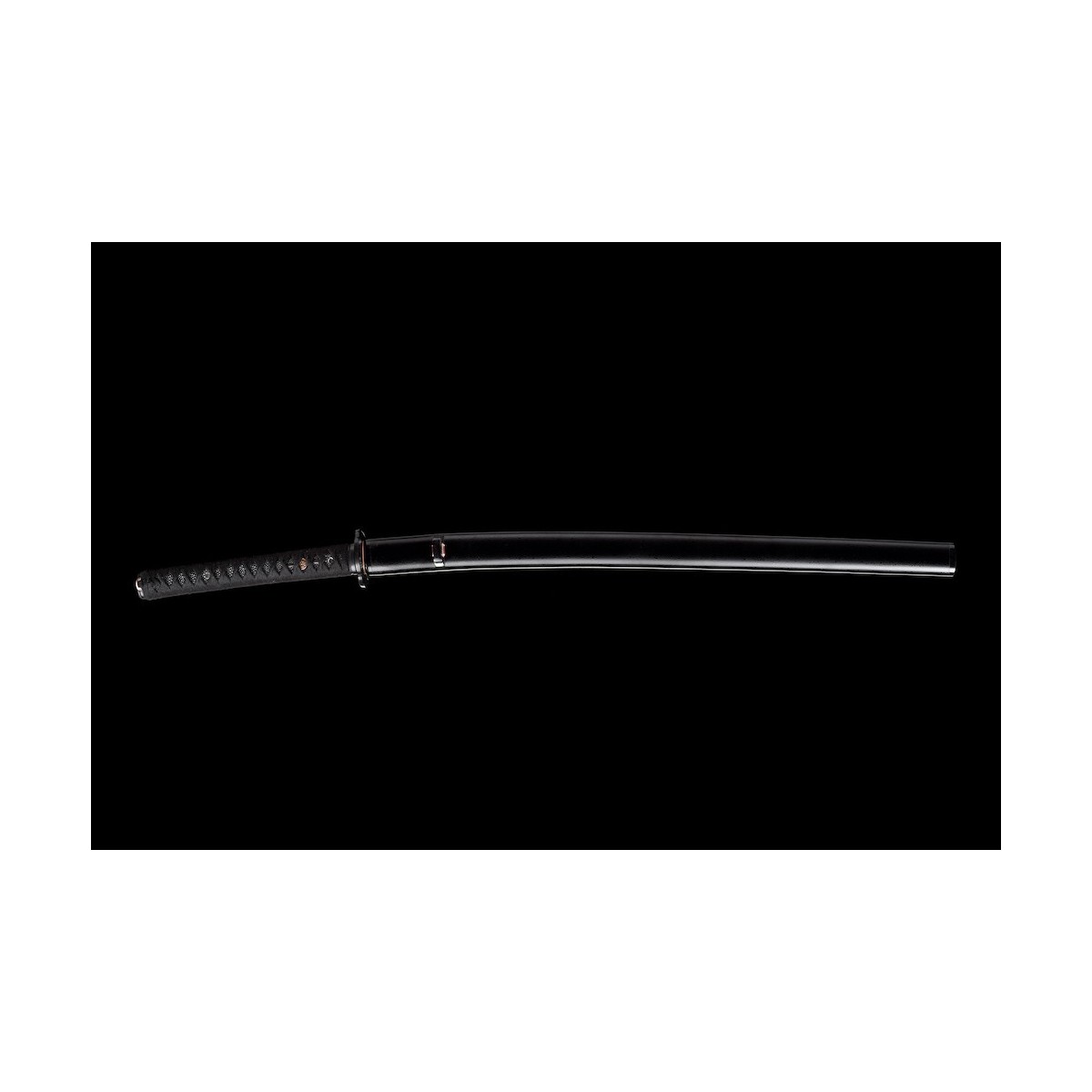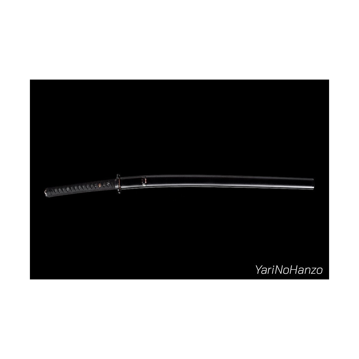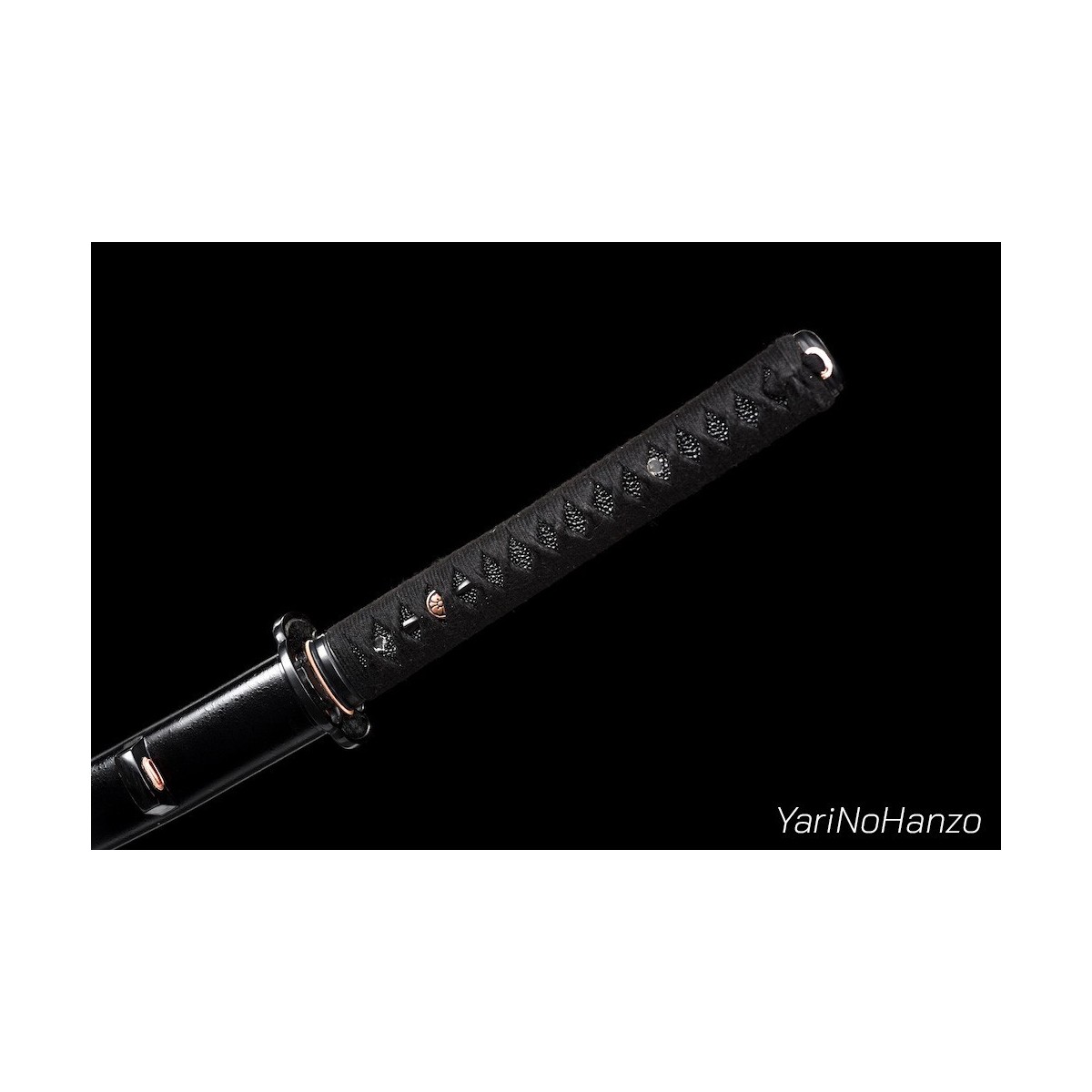 - Schwarzes Tsuka-Ito (Griffwicklung) aus Baumwolle und schwarze echte Rochenhaut.